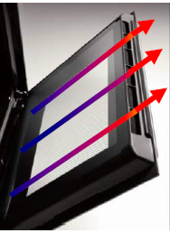 - Isıyı reflekte eden cam yapısı ve cam katmanları arasında düzenlenmiş hava akışı sayesinde kapının dış yüzeyi her zaman güvenlidir. Fırın 200 °C sıcaklıkta 1 saat çalıştırıldıktan sonra fırının kapağının sıcaklığı oda sıcaklığına göre 4 katmanlı camlarda sadece 20 °C, 3 katmanlı camlarda ise 30°C daha yüksektir.