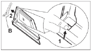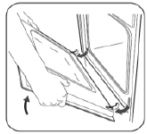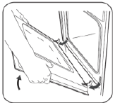 Kapını dışarı çıkarılmasından sonra, kapının üst kısmında bulunan camların sabitleme parçasını çıkarmak için (1 numara) tırnaklara basarak , sabitleme parçasını çıkartınız.