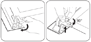 kapını alt kısmında bulunan (sağ ve sol) camların sabitleme tırnaklarını aşağıya doğru çekerek, açınız.