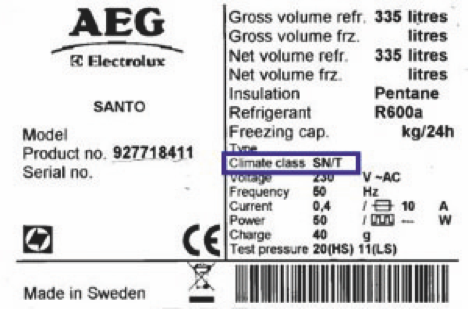 - Sınıf SN/T = 10-38°C